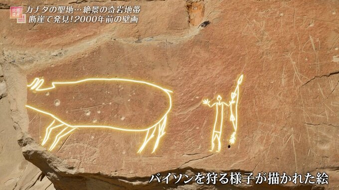 さらにブラックフットは断崖に、2000年以上も前から絵を刻んで残してきました。まさに「ライティング・オン・ストーン」です。