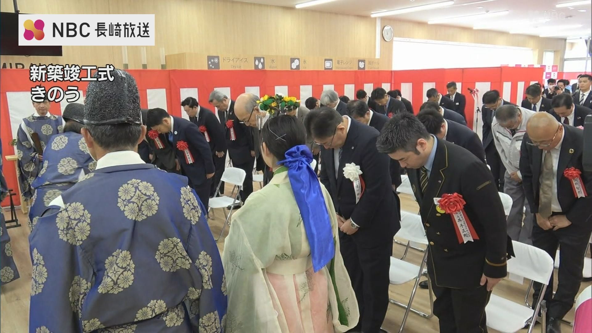 西九州新幹線新大村駅前に来年春開業予定の複合施設「サクラミライ新大村」内に一足早くオープンするスーパーマーケット「ゆめマート新大村」の竣工式が18日行われました。