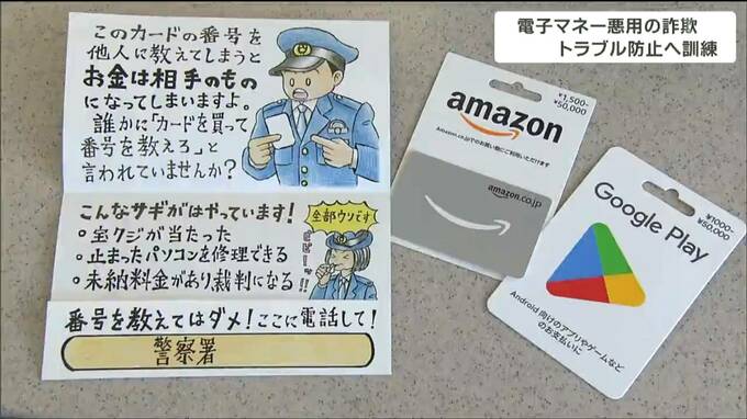 電子マネーを購入させる特殊詐欺の被害を防ごうと仙台市泉区のコンビニエンスストアで声掛け訓練が行われました。声掛けは、被害を未然に防ぐことがある一方、客とトラブルになるケースもあり課題となっています。
