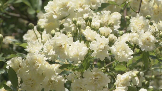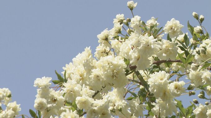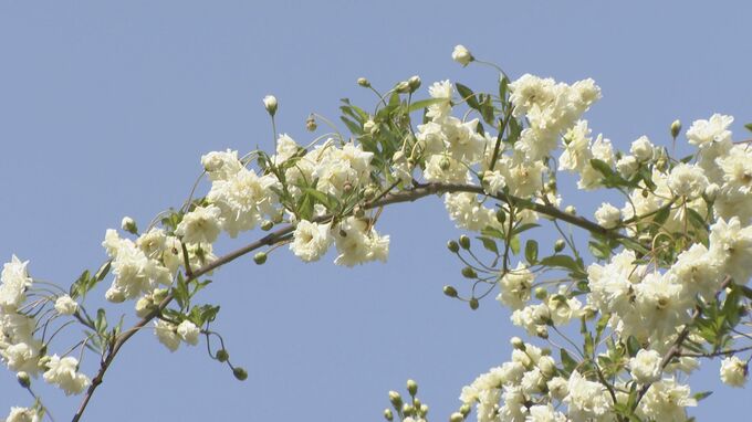 愛知県半田市で、市の天然記念物に指定されている「白モッコウバラ」を間近に楽しめる催しが4月19日から始まりました。