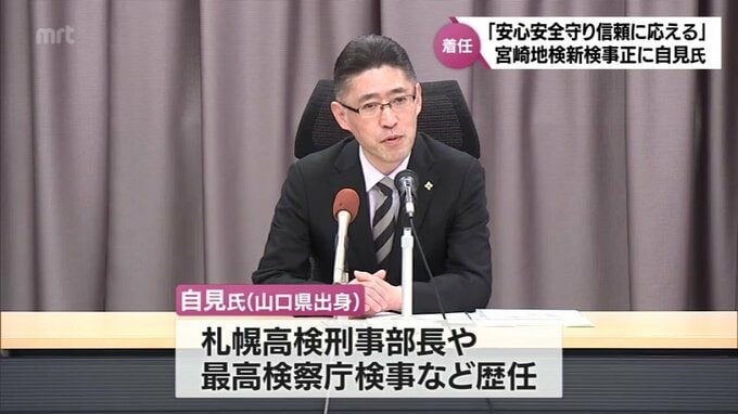 宮崎地方検察庁に新しい検事正が着任し、「県民の安心・安全を守り、信頼に応えることが重要」と抱負を述べました。19日付けで宮崎地検の新しい検事正に着任したのは、自見武士氏(55歳)です。自見氏は、山口県出身…