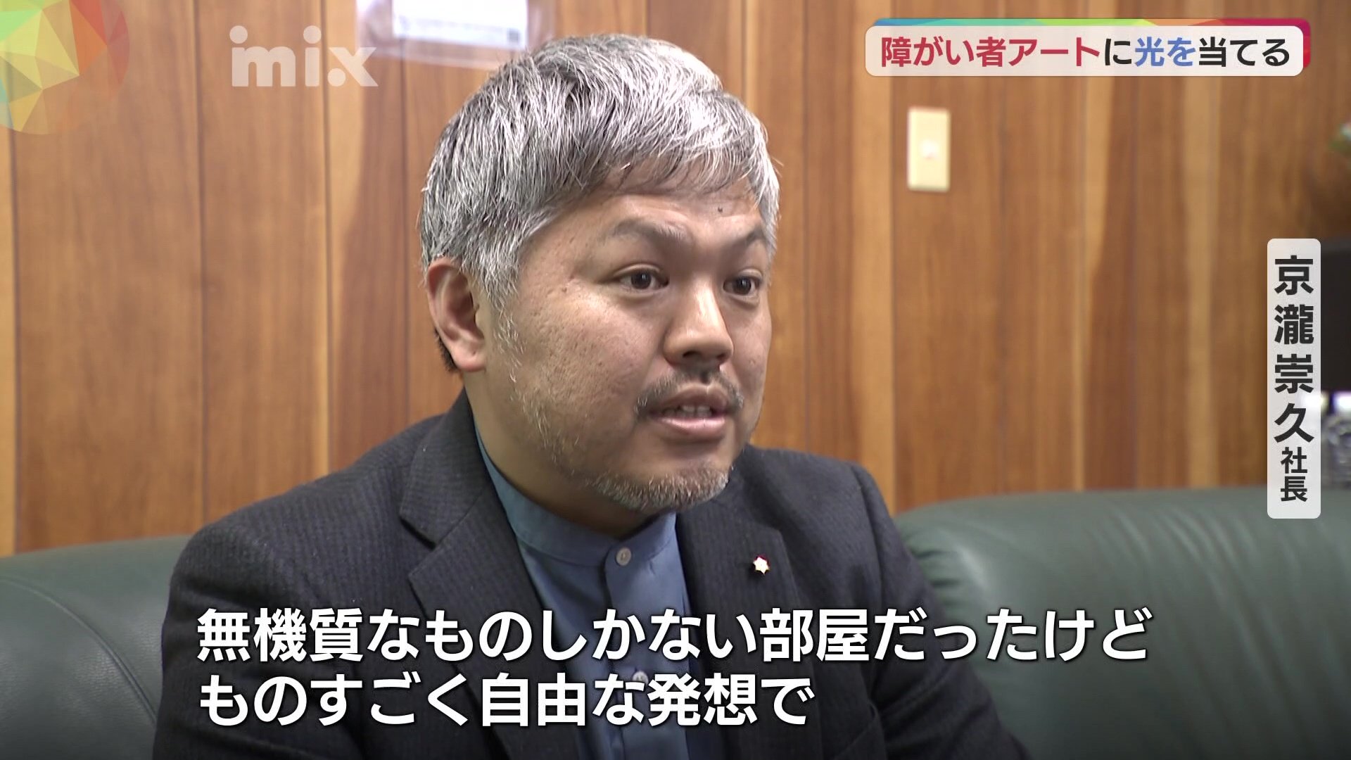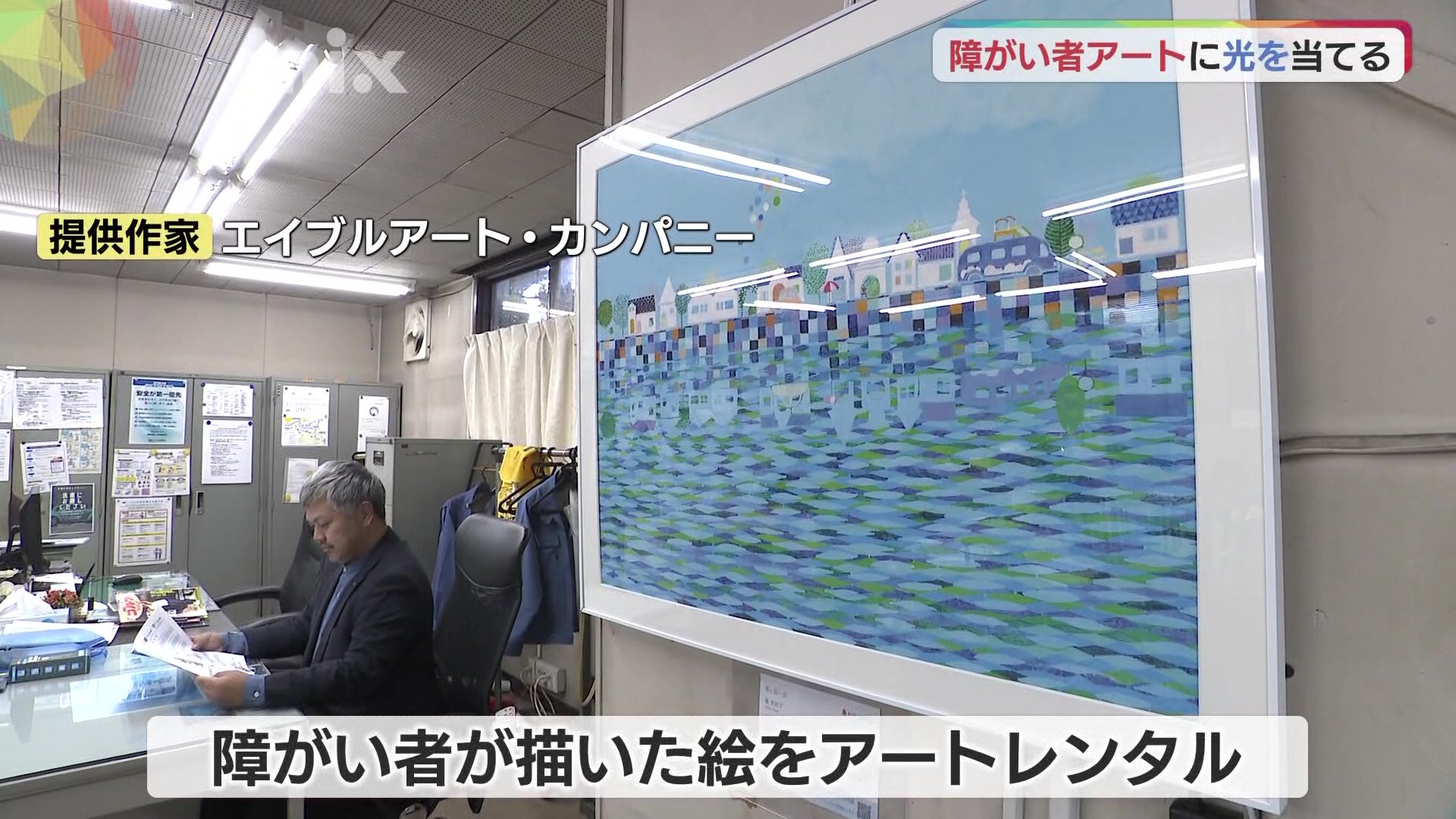 松村さんは3月、周南市の企業を訪ねました。港湾荷役や運送業務を営む周南市の「京瀧」。オフィスと応接室には、大阪の障がい者が描いた絵が飾られていました。アートレンタルです。七福アートに登録した作家の作品から、1年分を選んでもらって3か月ごとに掛けかえます。企業にとっては手軽に始められることや、絵が変わることで社内の雰囲気も変わるというメリットもあります。