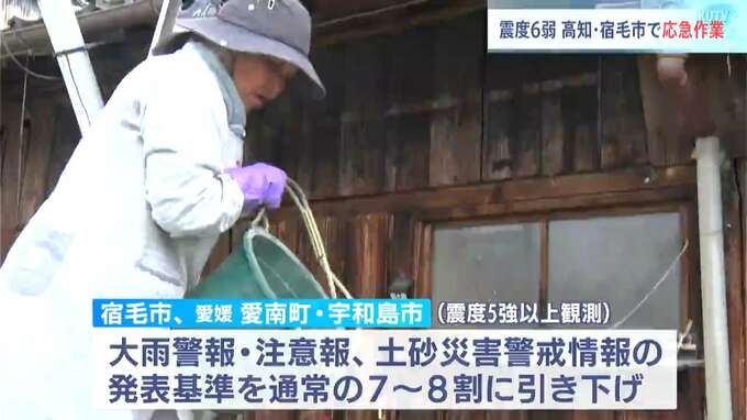 17日に震度6弱を観測した高知県宿毛市では20日、屋根にブルーシートがかけられた住宅があちらこちらで見られました。20日午前中は曇りの天気で、住民たちは割れた瓦を手作業で取り除くなど応急作業に追われ…