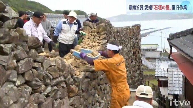 今月17日の地震で震度6弱を観測した愛南町の外泊地区では、崩れた石垣の復旧作業が始まりました。震度6弱の揺れが観測された愛媛県愛南町の外泊地区は、風よけのため江戸後期から石垣が築かれていて、「石垣…