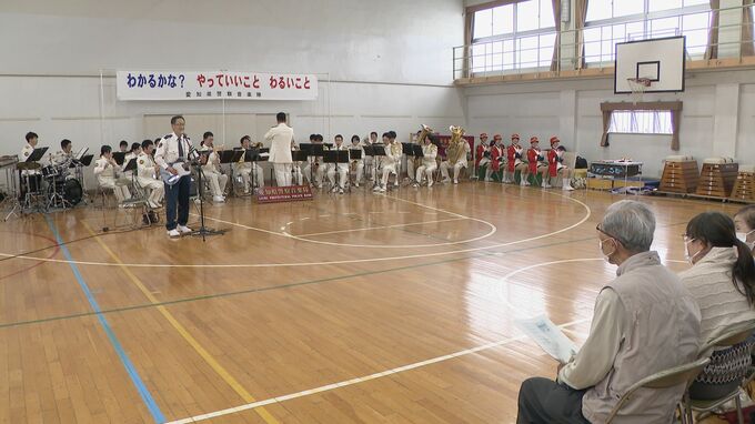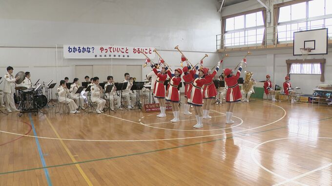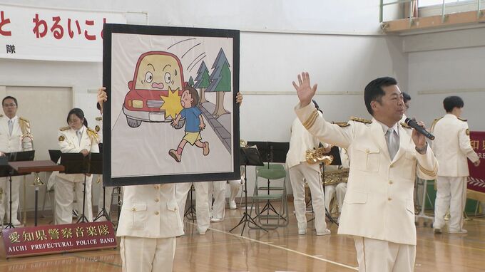イベントは、瑞穂警察署の浅田大一署長が挨拶し、愛知県警の音楽隊による演奏でスタート。ディズニー映画のテーマソングなどを演奏し、演奏の合間には音楽隊の隊長が「道路に飛び出さないこと」「自転車に乗る時にはヘルメットをかぶること」などを子どもたちに呼びかけました。