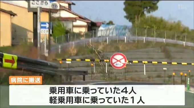 この事故で乗用車に乗っていた4人と軽乗用車に乗っていた1人の合わせて5人が病院に運ばれました。