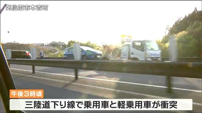 21日午後3時頃、気仙沼市本吉町の三陸自動車道下り線で乗用車と軽乗用車が衝突しました。