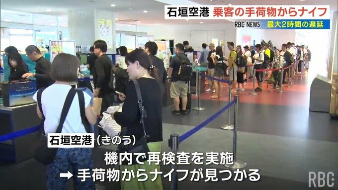 きのう午後2時半ごろ、石垣空港で機内に乗り込んだ乗客の手荷物からナイフが見つかり、搭乗していた他の乗客も再検査が行われるなど複数の便に遅延が出ました。
