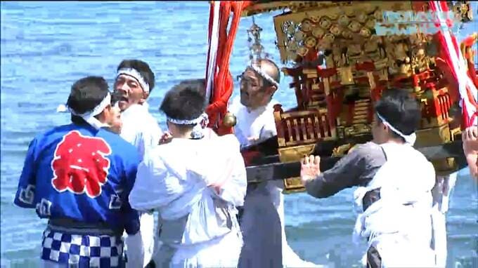 宮城県石巻市の離島、網地島で海上の安全や大漁を祈る祭りが21日、開かれました。白装束に身を包んだ男衆が神輿を担いだまま何度も海に入る「あばれ海神輿」を見せ、浜は久しぶりの活気に包まれました。石巻市の…