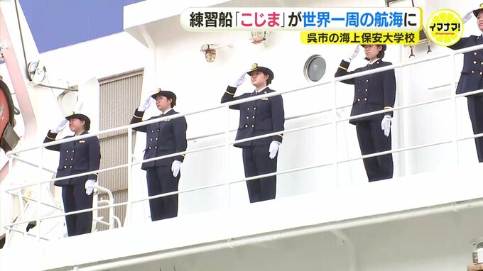 広島県呉市の海上保安大学校の練習船「こじま」が実習生を乗せ、世界一周の航海に出港しました。実習生「最前線で活躍できる海上保安官となれるよう実習生一同、全力でがんばっていきます」海上保安大学校で行われ…
