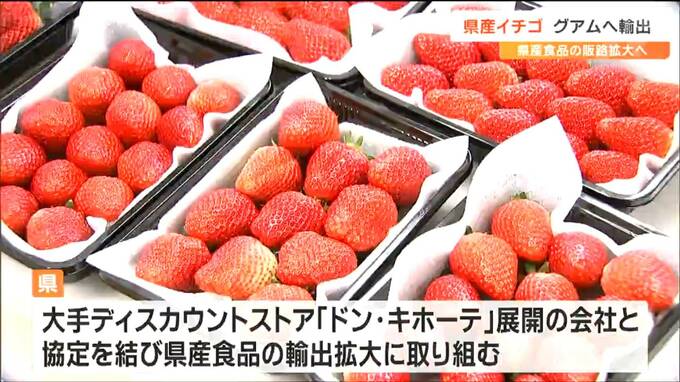 県は大手ディスカウントストアの「ドン・キホーテ」を展開する会社と協定を結び、県産食品の輸出拡大に取り組んでいます。県によりますと「ドン・キホーテ」の新店舗がグアムにオープンすることになり、これに合わせ県産イチゴを販売することになりました。