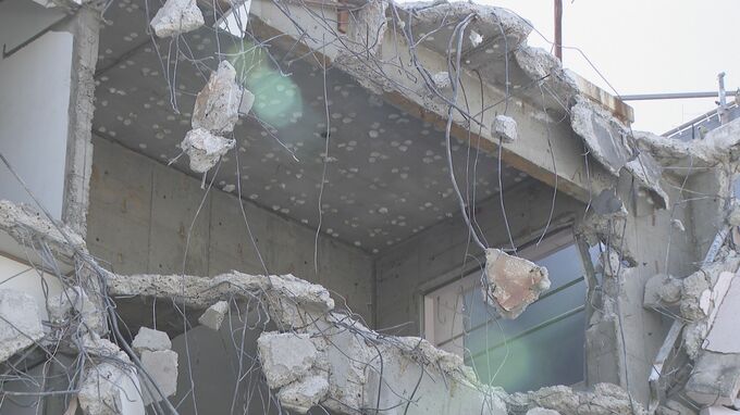 「名古屋市中川区の解体作業現場です。コンクリートがむき出しになっていて、下の方を見ますと、いまにも崩れ落ちそうな状況です」