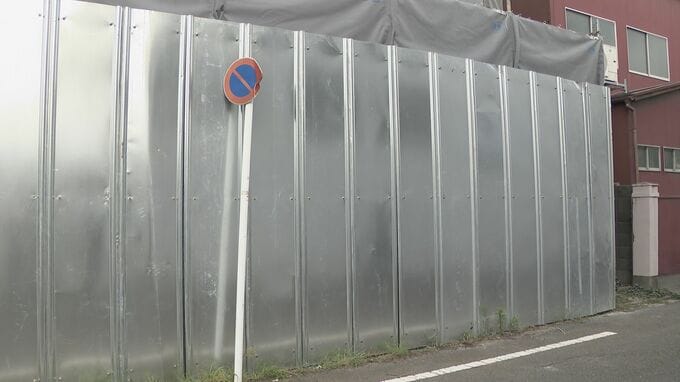 「中川区の解体工事現場です。きのうとは違い、金属製の囲いが付けられています」