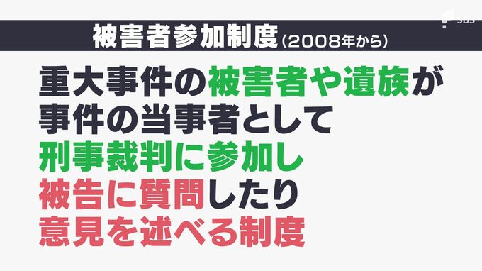被害者参加制度は、重大事件の被害者や遺族が事件の当事者として刑事裁判に参加し、被告に質問をしたり、意見を述べたりすることができるもので、2008年から始まりました。