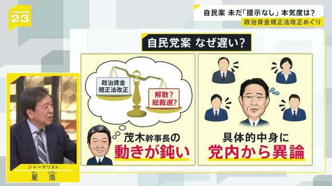 2つ目は、実際に規正法改正に踏み込むとなると、例えば『パーティーを全廃するのは嫌』『連座制を強められたら嫌』それから『企業・団体献金を残してほしい』など、党内からたくさんの注文が出てくるので、岸田さんはそれらに合わせようと踏み切れないでいるようです。