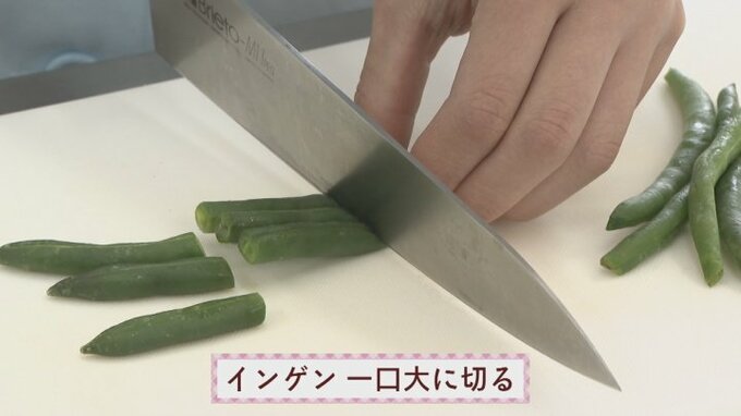 この間にインゲンを1口大に切り、炊き終わりを待ちます。