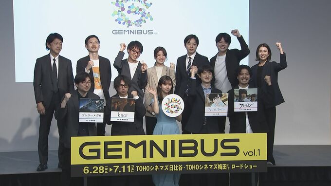 俳優・歌手の上白石萌歌さんが、上西琢也監督や平瀬遼太郎監督らとともに、映画「GEMNIBUS vol.1」製作発表会見に登壇。
