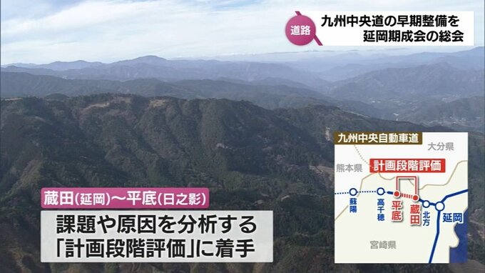 九州中央自動車道の早期整備を目指す延岡期成会の総会が、宮崎県延岡市で行われました。延岡市と熊本県嘉島町を結ぶ九州中央自動車道の早期整備を目指す延岡期成会は、54の民間団体で構成されています。23日の総会…
