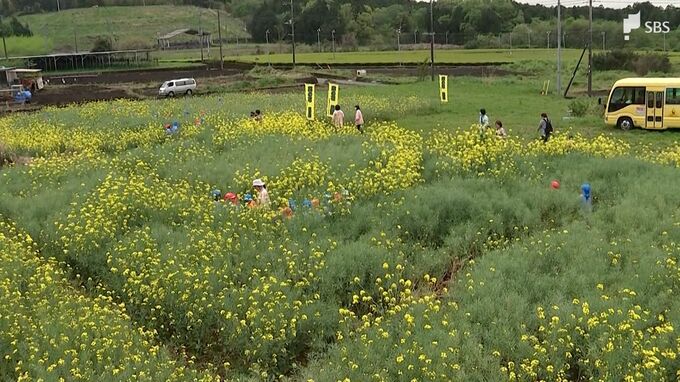 静岡県富士市の耕作放棄地に菜の花の迷路が完成し、地元の子どもたちが探検を楽しみました。