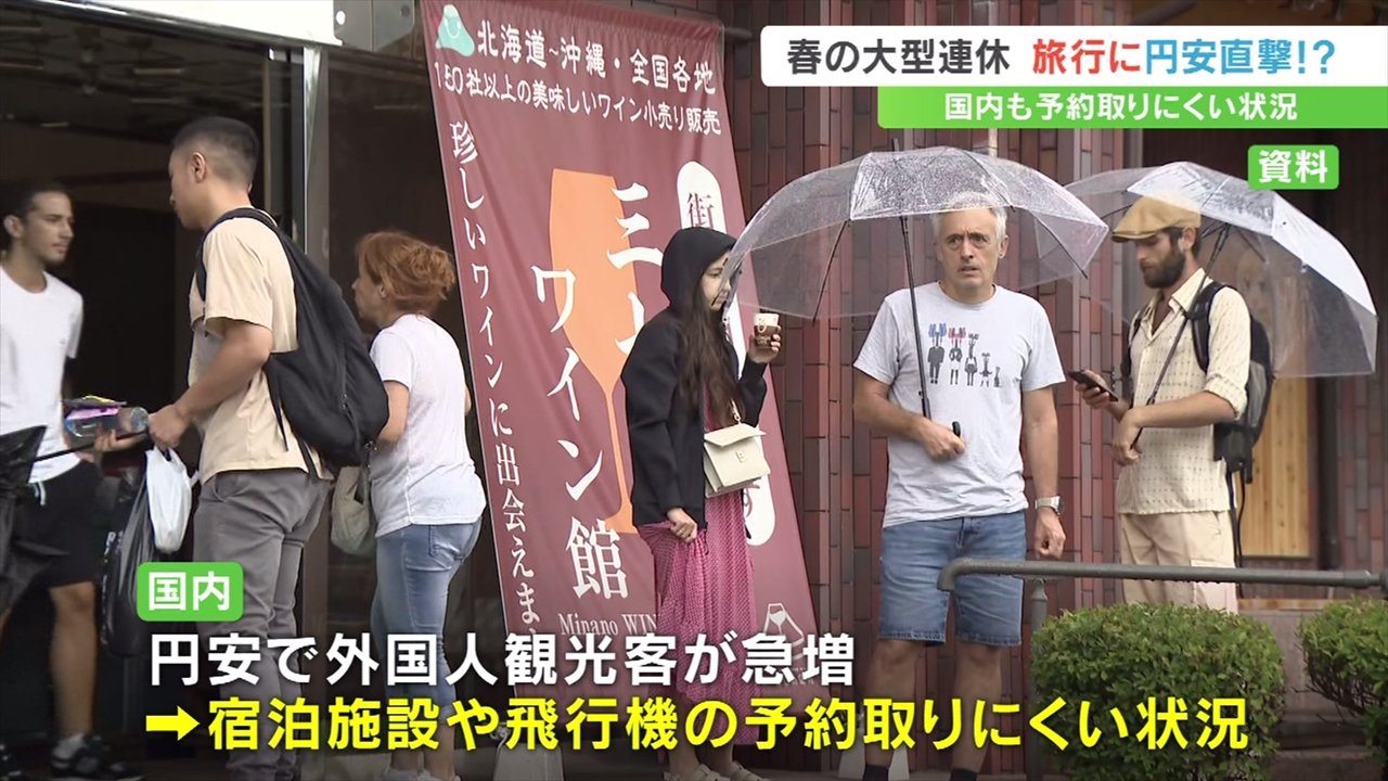 円安で外国人観光客が急増し、国内の宿泊施設や飛行機の予約が取りにくい状況になっているのです。