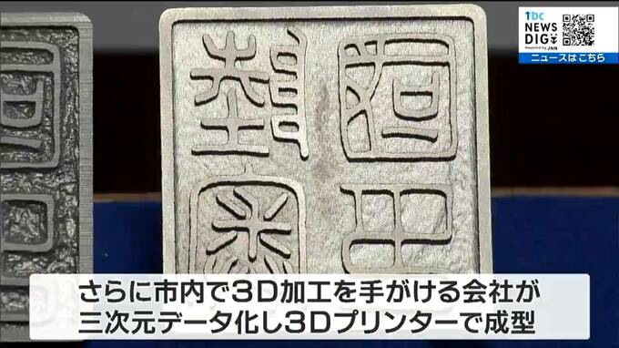 さらに市内で3D加工を手がける会社が三次元データにした上で、金属3Dプリンターで形にしました。文字のかすれ具合など、当時の印影を精密に再現しています。