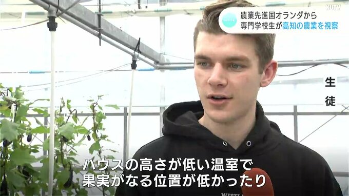 農業先進国オランダの専門学校生が、日本で取り入れられている栽培方法や情報通信技術を活用したハウスの管理方法などを視察しました。高知を訪れているのは、農業の分野で県と情報交換などを行う協定を結んでいる…