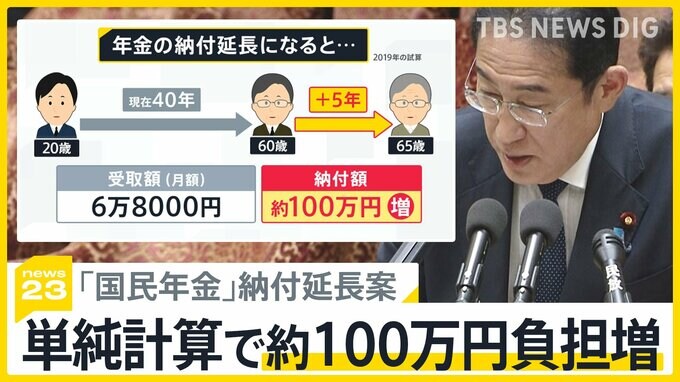 現在60歳までとされている「国民年金」の納付期間を65歳までに延ばす案を、厚労省が議論しています。延長した場合、支払い額は単純計算でおよそ100万円増えることに。負担に見合った給付を将来受けられるのか、若…