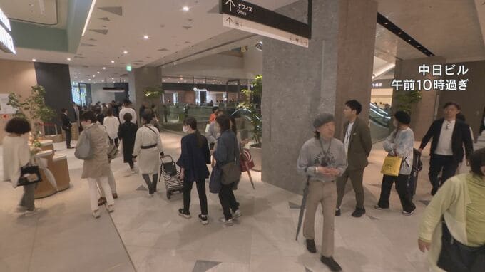 全館オープン翌日の24日も多くの人で賑わう中日ビル。