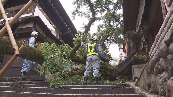 4月23日午前11時45分ごろ、京都市東山区の清水寺(きよみずでら)近くにある産寧坂(さんねいざか)で、飲食店の敷地に生えていた桜の木が根本から折れて倒れ、歩いていた男性が下敷きになりました。(地元の人)…
