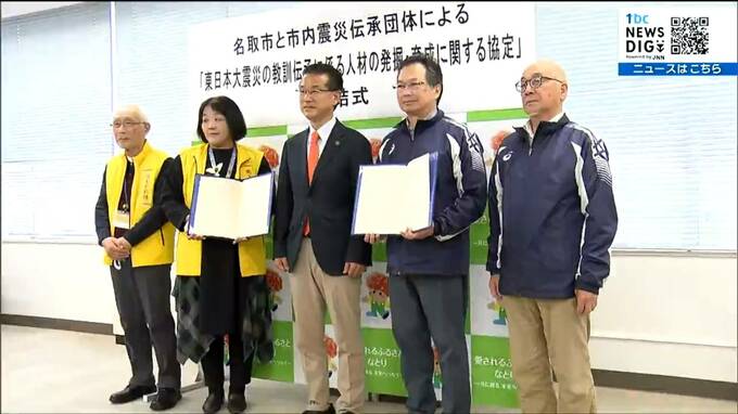 東日本大震災の教訓を後世に伝えるため、語り部などの人材の発掘や育成を強化しようと、宮城県名取市と、震災伝承に取り組む団体が協定を結びました。名取市役所で行われた協定の締結式では、山田司郎市長と震災伝…