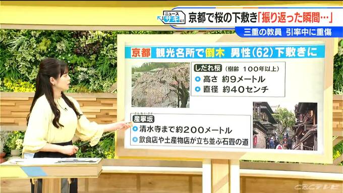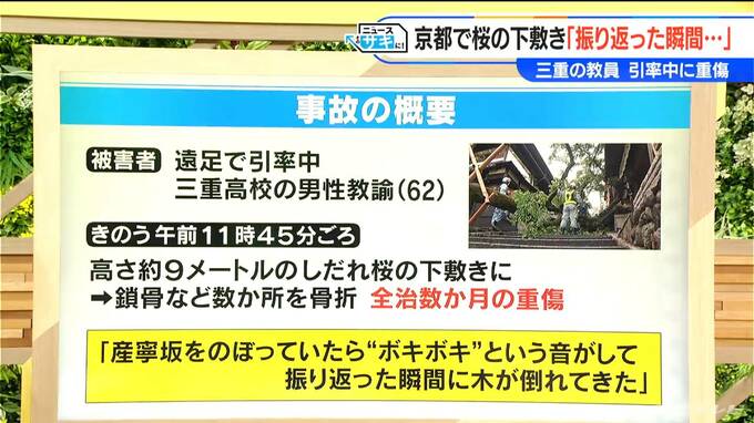 その男性によると「産寧坂をのぼっていたらボキボキという音がして、振り返った瞬間に木が倒れてきた」ということです。