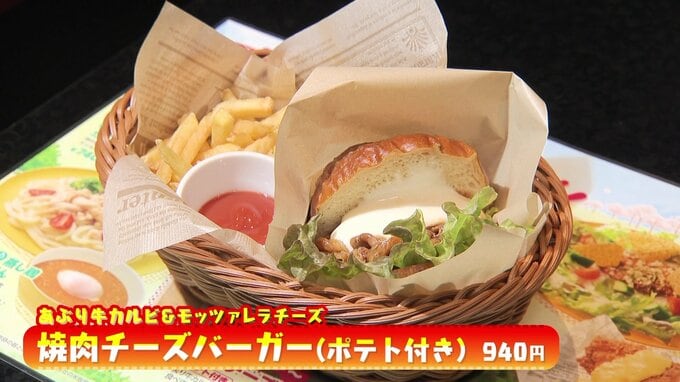 なかでもおススメの「カラオケグルメ」が“炙り牛カルビ”を挟んだチーズバーガー”なんだとか。