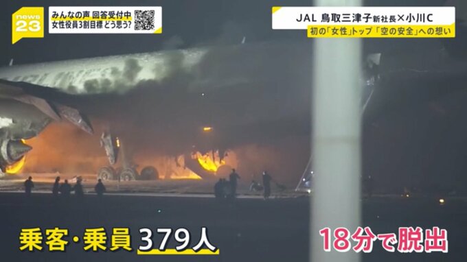 「海保機の方は大変残念なことになりましたけれども、運航乗務員も客室乗務員も冷静に、そのときに出来得る対応を使命感を持って果たしてくれた」