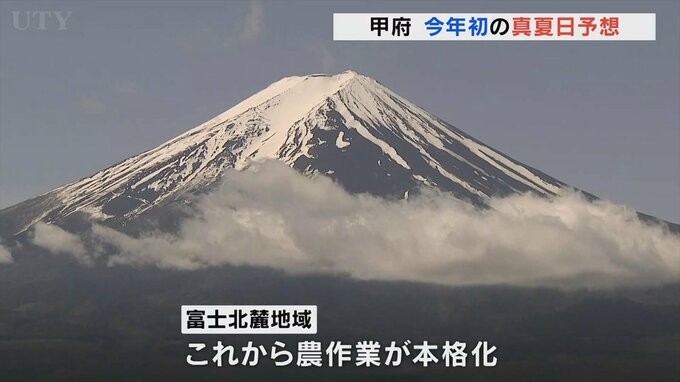 甲府地方気象台によりますと甲府の最高気温は31℃と今年初めての真夏日が予想されています。