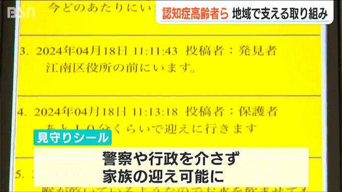 「江南区見守りシール交付事業です。1人で自宅に戻れない高齢者を対象にしています。高齢者が行方不明になった場合の早期発見・早期帰宅を支援する事業です」