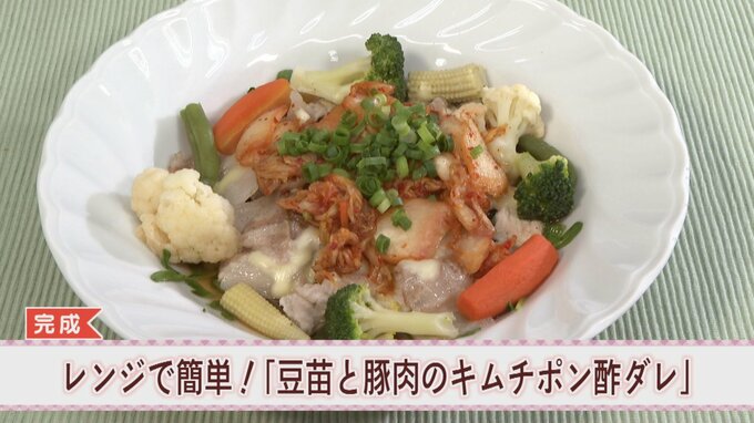 須永さん:「電子レンジを使って一皿でタンパク質と野菜をとることができ、栄養バランスも良くキムチとポン酢を使った味付けでご飯が進む一品となっています」