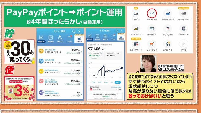 谷口さんは、日常的にポイントを貯めたり使ったりするのに加え、PayPayでポイントを運用。