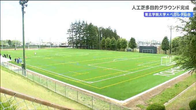 ベガルタ仙台と東北学院大学が連携する練習拠点整備が一歩踏み出しました。サッカーの練習など学生が多目的に使える人工芝のグラウンドが東北学院大学泉キャンパスに完成しました。25日は、グラウンドのオープニ…
