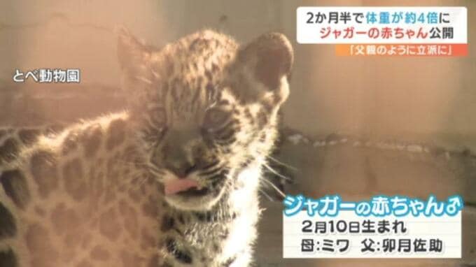 春のベビーラッシュにわくとべ動物園で、2月に生まれたジャガーの赤ちゃんが報道陣に公開されました。記者「今お母さんとジャガーの子どもが出てきました。今年2月10日に誕生したオスのジャガーの赤ちゃん」と…