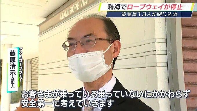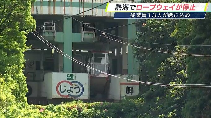 4月25日午前、熱海市のアタミロープウエイで、何らかの原因でゴンドラが停止する騒ぎがありました。一時、従業員13人が閉じ込められましたが、無事救助されました。