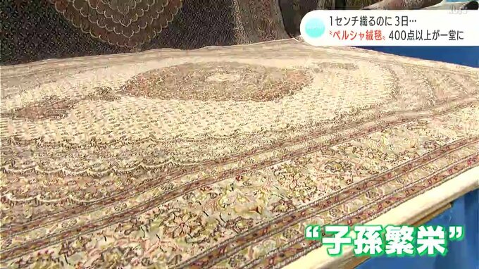 「約440点、手織りのペルシャ絨毯を取り揃えていますので、一枚一枚手で触って。おうちに敷いたときにどういう風になるかなということを想像していただいて、購入していただけたらなと思います」