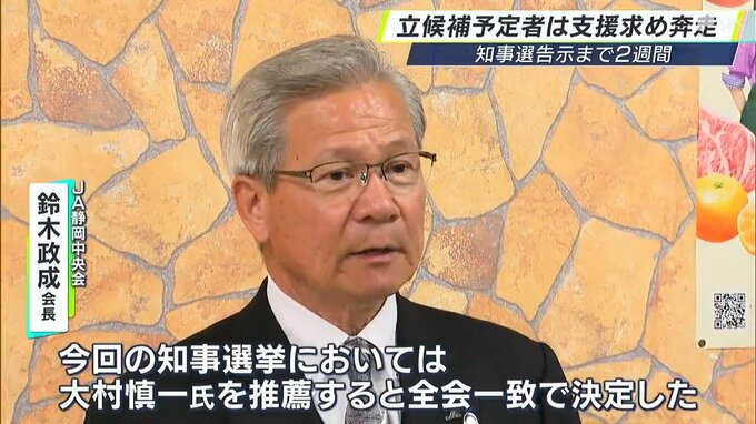 今回の知事選をめぐっては、川勝平太知事の職業差別ともとれる発言が発端となっていて、農業関係者からは抗議の声明文が提出される事態となりました。知事選に向け、JAグループの動向に注目が集まる中、各立候補予定者は農業政策を中心に意気込みを語りました。
