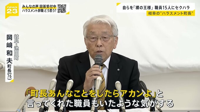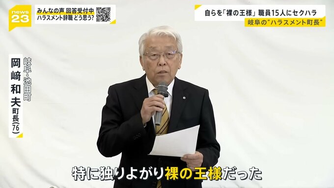 約20年前から体を触るなどのセクハラ行為 岐阜・岡﨑町長は自らを「裸の王様」
