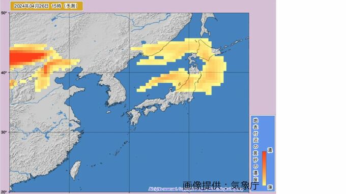 気象庁によりますと、東日本ではきょう(26日)、北日本ではきょう(26日)からあす(27日)にかけて黄砂が飛来、すでに見通しが悪くなっているところがあるようです。今後、黄砂が飛来する地域では、視程(水平方向で見通しの効く距離)が10キロメートル未満となり、所によっては視程が5キロメートル未満となるところもあるでしょう。