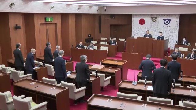 町議会は岡﨑町長の辞職に全会一致で同意。
