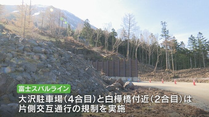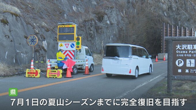 土砂が流れ込んだ4合目の大沢駐車場と2合目の白樺橋付近は片側交互通行の規制を実施していて、県は7月1日からの夏山シーズンまでに完全復旧を目指しています。