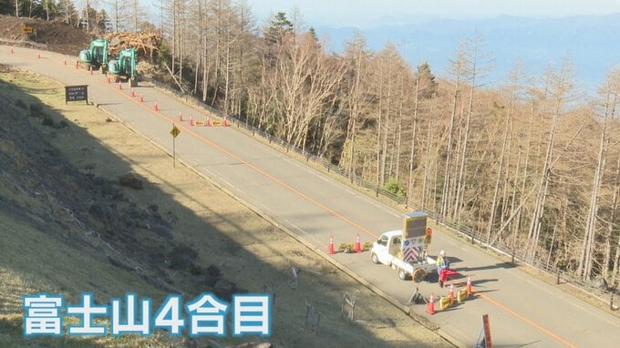 「午前6時、富士スバルラインです。職員がカラーコーンを撤去しています」