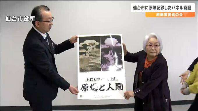 戦争の恐ろしさと平和の尊さを伝えようと、原爆被害者の会から仙台市に79年前の原爆投下の様子などを記録したパネルが寄贈されました。