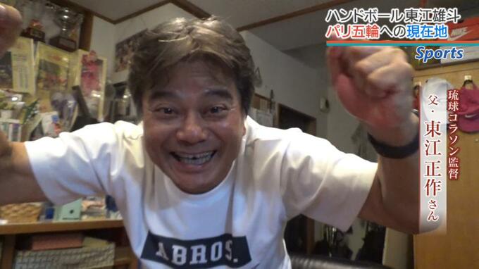 家族みんながハンドボールに携わる東江家。琉球コラソンの監督を務める父・正作さんも息子の快挙達成に喜びを爆発させました。