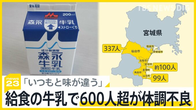 宮城県内の小中学校で、給食に出された牛乳を飲んだ生徒・児童ら少なくとも600人以上が体調不調を訴えています。25日、仙台市内の小中学校の児童・生徒から給食で、東北森永乳業が製造した給食用の牛乳を飲んだ際…